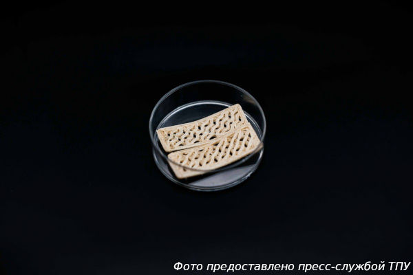 Ученые ТПУ с помощью метода послойной 3D-печати получили биосовместимые скаффолды со структурой гироида на основе биодеградируемого полилактида, пластифицированного полиэтиленгликолем. Добавление 10 мас. % полиэтиленгликоля позволило снизить температуру стеклования полилактида до 36-39 °C.